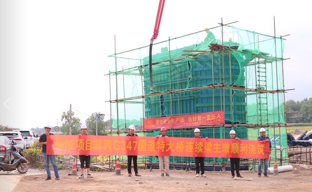 日前,歷經(jīng)6小時(shí)連續(xù)施工,銅陵港江北港區(qū)鐵路專用線跨國(guó)道G347特大橋連續(xù)梁首個(gè)主墩順利澆筑完成。