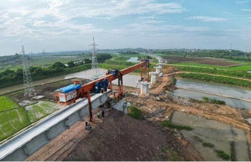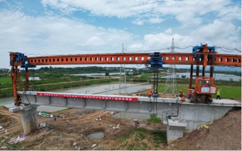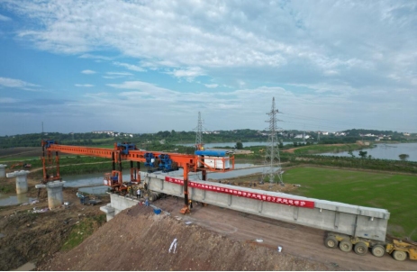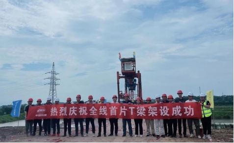 7月6日上午10點(diǎn)10分,在銅陵港江北港區(qū)鐵路專用線項(xiàng)目施工現(xiàn)場(chǎng),隨著全線首片長(zhǎng)32米,重140噸的預(yù)制T梁平穩(wěn)精準(zhǔn)架設(shè)在章家院特大橋0號(hào)臺(tái)至1號(hào)墩上,標(biāo)志著江北港鐵路專用線項(xiàng)目首片T梁架設(shè)成功,橋梁架設(shè)施工正式拉開帷幕,項(xiàng)目建設(shè)駛?cè)肟燔嚨馈?